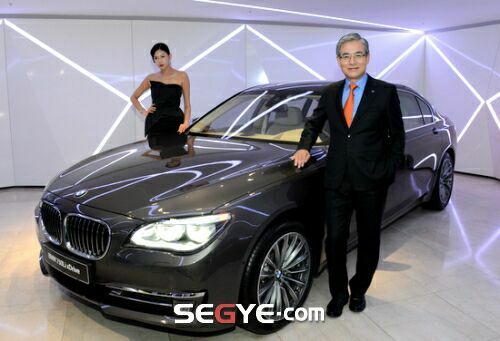 | ▶ BMW코리아 김효준 사장(우)과 모델이 뉴 7시리즈 앞에서 포즈를 취하고 있다. /사진=이다일 기자 |